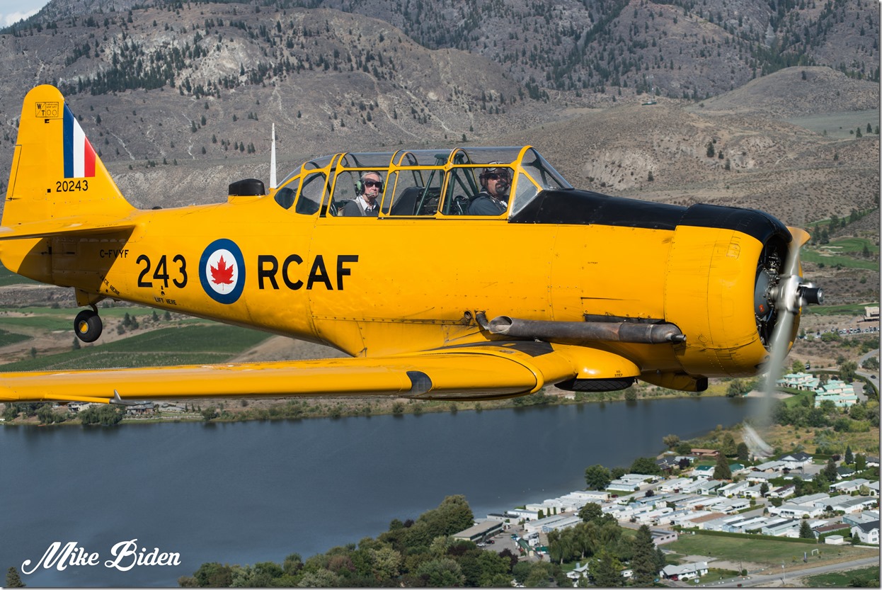 The former fighter pilot went for a 20-minute flight in Dave Watson’s Harvard during the Western Warbirds Flight Fest in Oliver, B.C.