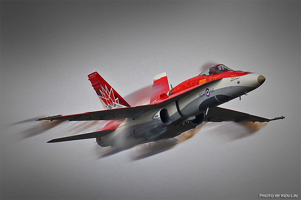The newly-painted CF-18, sporting a red and white Canada 150 theme, has been a show stopper for those who gather at the observation areas around the base to watch the shows come together.