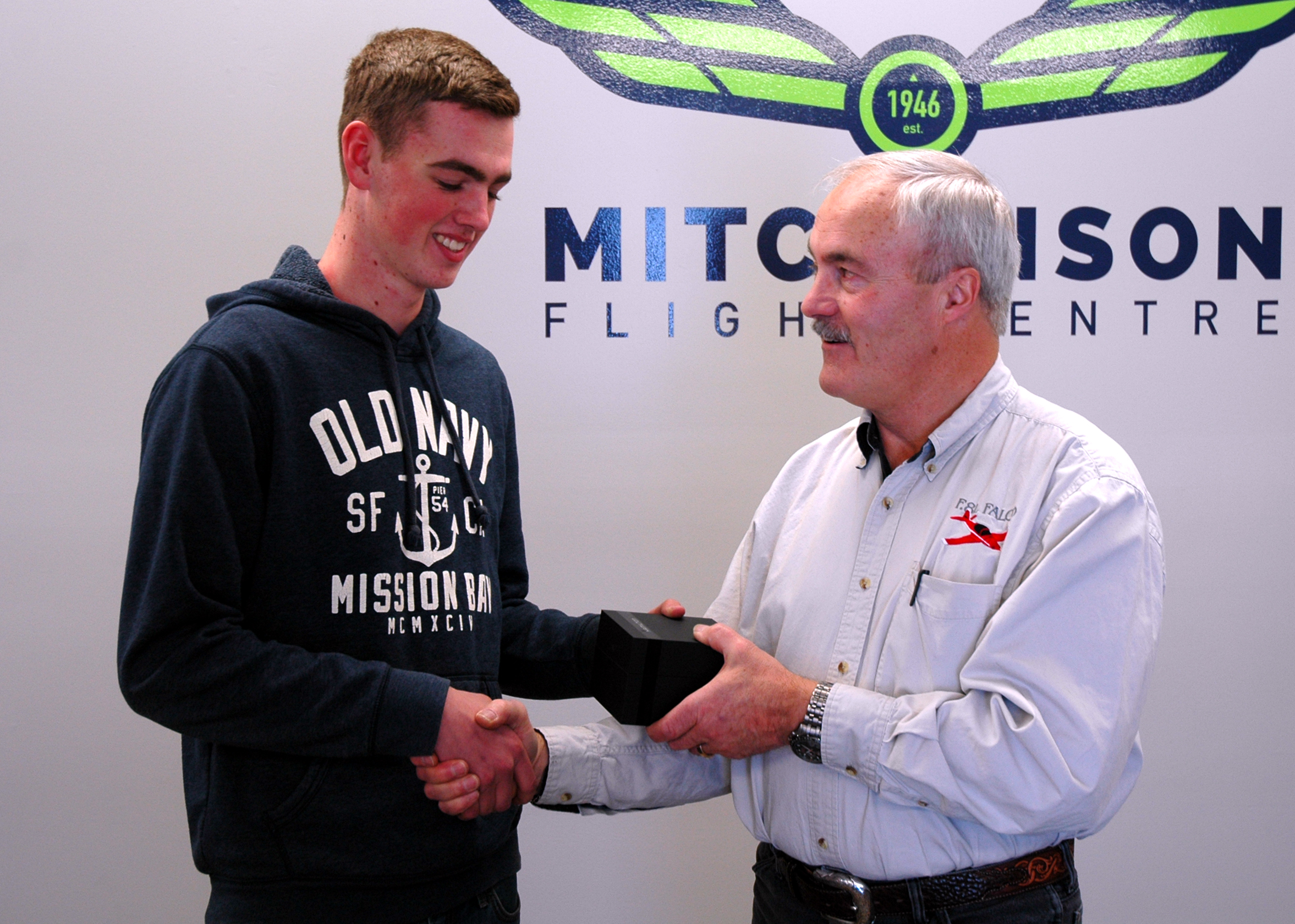 The presentation of the watch was made by Canadian Aviator columnist and contributor Malcolm McLeod at Mitchinson’s Saskatoon headquarters just before Christmas. In addition to the watch, Kerr will get a checkout in a Cessna 172 courtesy of Mitchinson and Canadian Aviator.