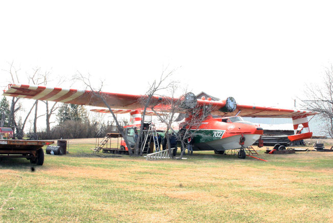 The Alberta group has re-attached the wings on the amphib and will soon mate engines it obtained in a swap with a Nova Scotia town to the virtually complete airframe.