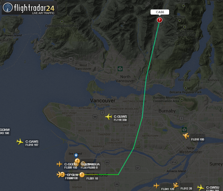 The Metroliner took off from Vancouver International Airport at 7 a.m. bound for Prince George and crashed a few minutes later on Mt. Coliseum. Radar tracked the aircraft in a near vertical descent, losing 8,000 feet in 20 seconds before the crash.