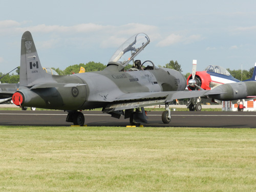 A former Canadian Armed Forces T-33 sports its last paint job on the warbird flightline as AirVenture enters its second day.