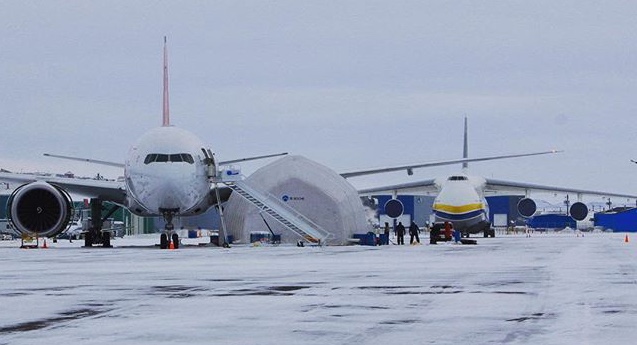 On Feb. 1, A SwissAir Boeing 777 on its way to Los Angeles from Zurich had to divert to Iqaluit with an engine failure. Another plane was sent from New York to get the 233 passengers and crew but the 777 wasn’t going anywhere without another engine.
