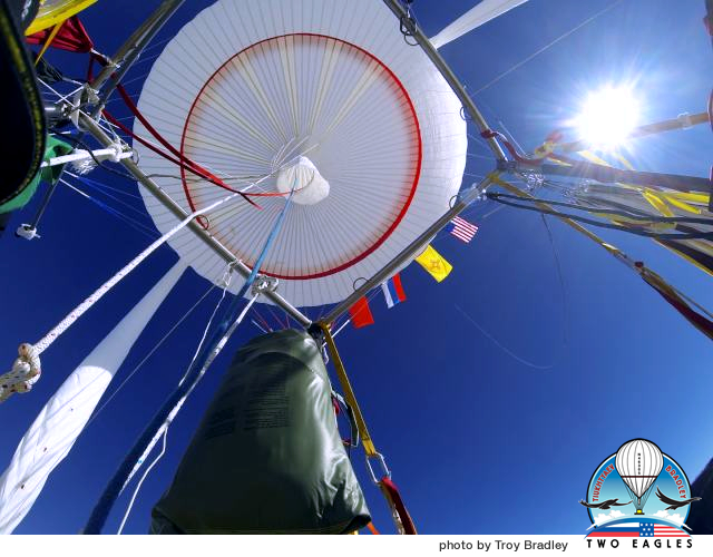Leonid Tiukhtyaev, of Russia and Troy Bradley, of the U.S., left Japan last Saturday in Two Eagles, a helium-filled balloon. They’re trying to be the first balloonists to cross the Pacific since 1981. They’re also hoping to set a flight duration record of more than five days and 17 hours set in 1978.