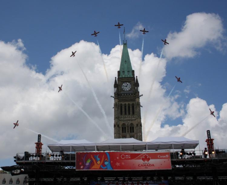 The RCAF Snowbirds maintained their time-honoured tradition of performing over Canada Day celebrations at Ottawa on July 1, despite weather warnings, including the possibility of tornadoes, in the area.