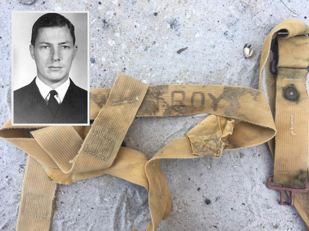 A bundle of straps that looked like any other beach flotsam has solved a 60-year-old mystery and answered some questions for the family of a Canadian Navy pilot. When Zack Johnson unraveled the straps he realized it was a parachute harness and its last occupant’s name, LT ℗ TROY, was stencilled it. A quick search of Canada’s military archives revealed Lt. Barry Troy’s F2H-3 Banshee disappeared in fog off the Florida on Feb. 25, 1958 on a flight from NAS Mayport in Florida to HMCS Bonaventure. His helmet and a piece of landing gear were all that was recovered from the crash area.