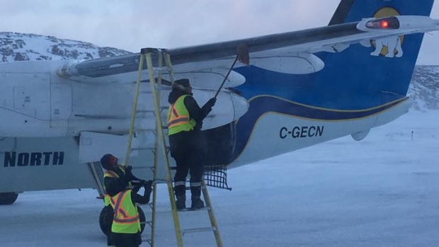 De-icing is a fact of life in Canada’s North but when the de-icing machine broke down in Cape Dorset, Nunavut last week, airline officials had no choice but to break out the mop and bucket.