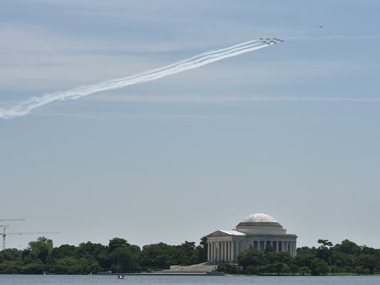 The Snowbirds flew right over the highly protected government buildings that surround the Mall in downtown Washington. Under normal circumstances, aircraft flying that close to the White House, Capitol building and the Washington Monument would be blown out of the sky.