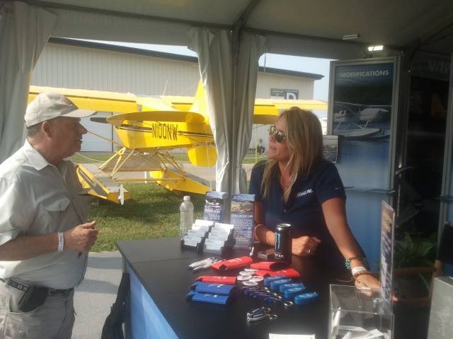 Wipaire at AirVenture 2014-08-02 root Oshkosh2014 0 Wipaire sales rep Brittnie Brink discusses float options with an AirVenture visitor. Show Full Size Photo